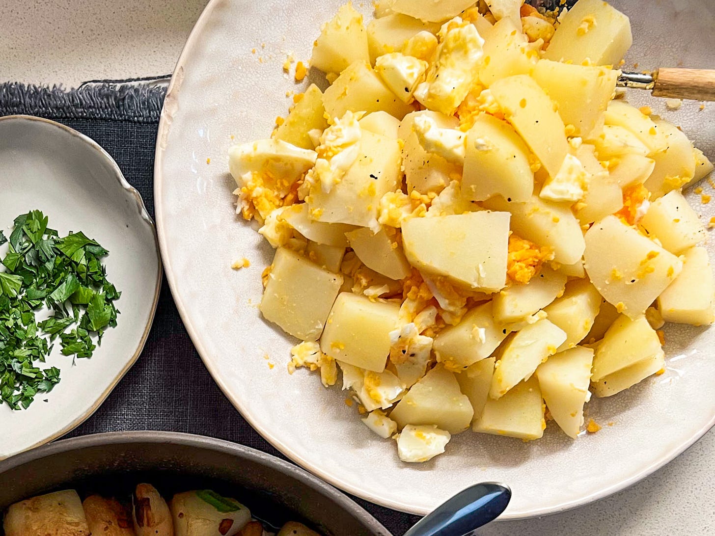 Every household has their own version of this recipe. In ours, I make it one of two ways. The first method is the way my daughter enjoys it. No need for a formal recipe here because you simply combine boiled cubed potatoes and smashed boiled eggs, season with salt and pepper and optionally (as my kids do), add tomato sauce or mayo (if you’re an Aussie kid, you’ll appreciate the love for tomato sauce!).